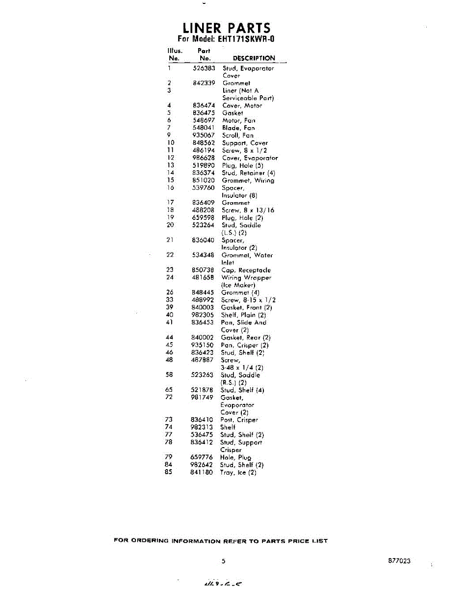 Parts for Whirlpool EHT171SKWR0: 05 - Section Parts