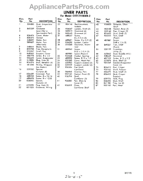 Parts for EHT171VKWR2