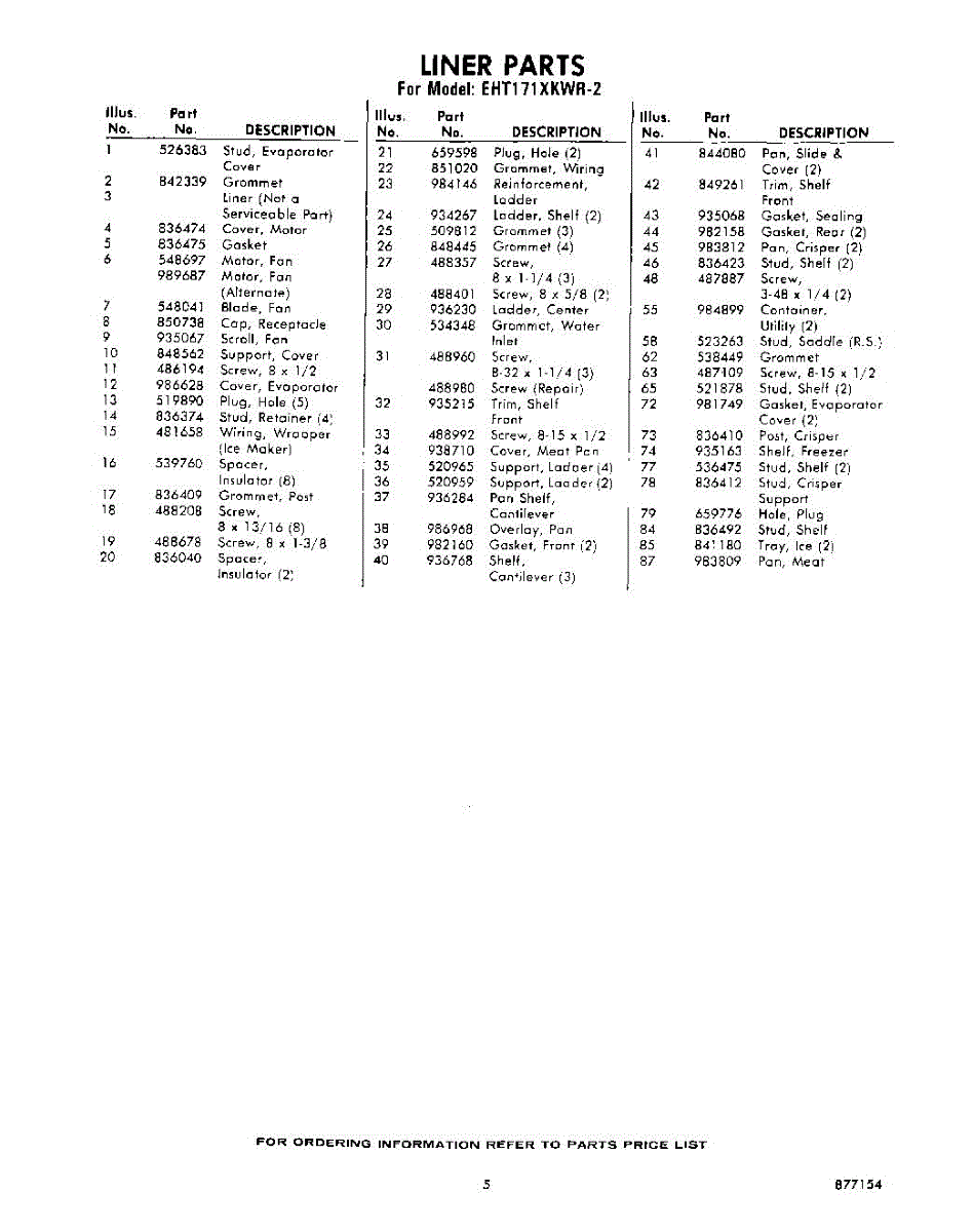 Parts for Whirlpool EHT171XKWR2: 05 - Section Parts