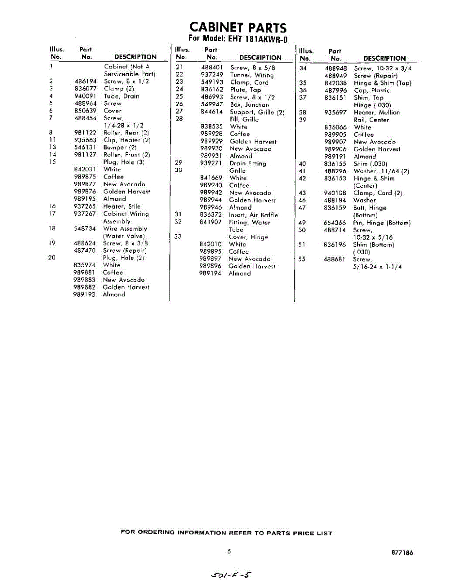 Parts for Whirlpool EHT181AKWR0: 05 - Section Parts