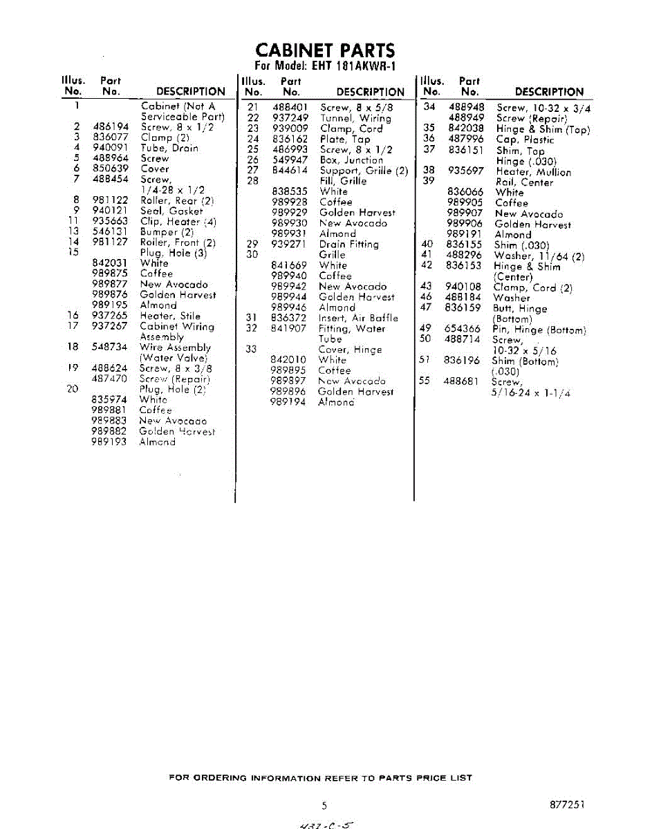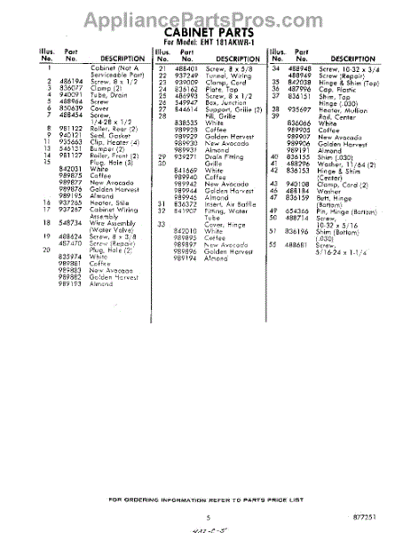 Parts for Whirlpool EHT181AKWR1: 05 - Section Parts