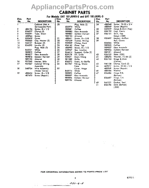 Parts for Whirlpool EHT181JKWR0: 05 - Section Parts
