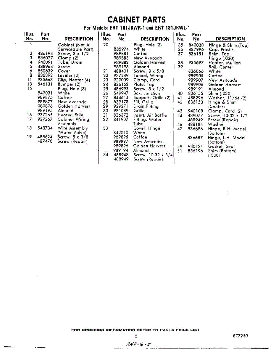 Parts for Whirlpool EHT181JKWR1: 05 - Section Parts