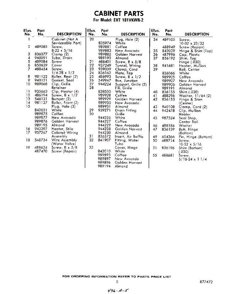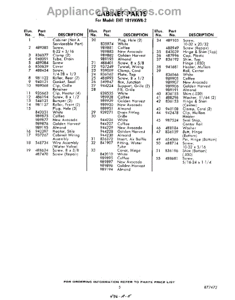 Parts for Whirlpool EHT181VKWR2: 05 - Section Parts