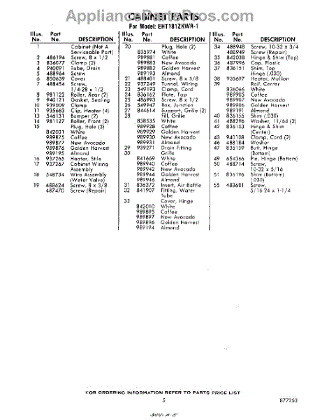 Parts for Whirlpool EHT181ZKWR1: 05 - Section Parts