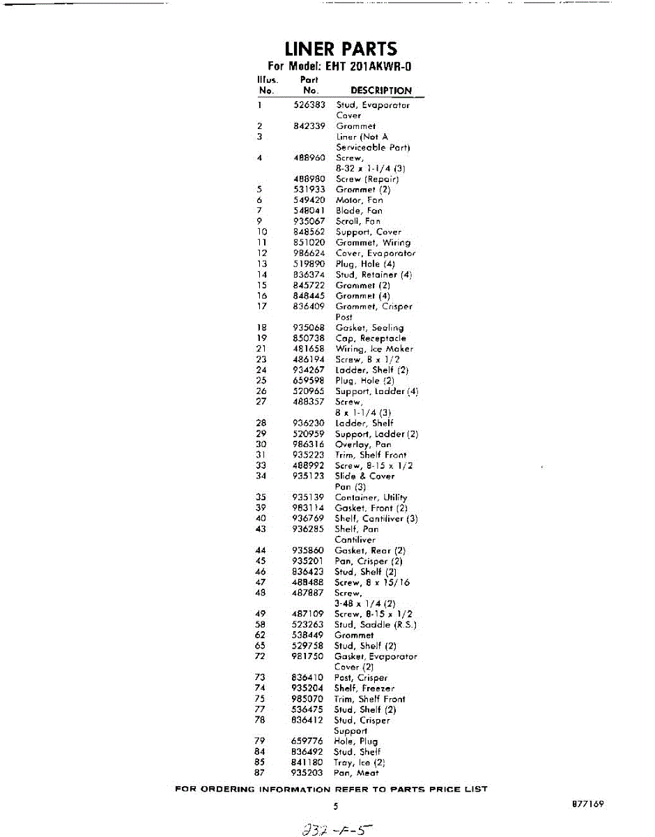 Parts for Whirlpool EHT201AKWR0: 05 - Section Parts