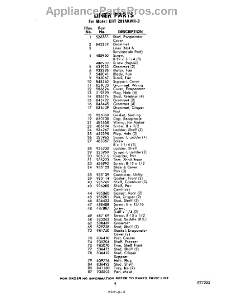 Parts for Whirlpool EHT201AKWR3: 05 - Section Parts