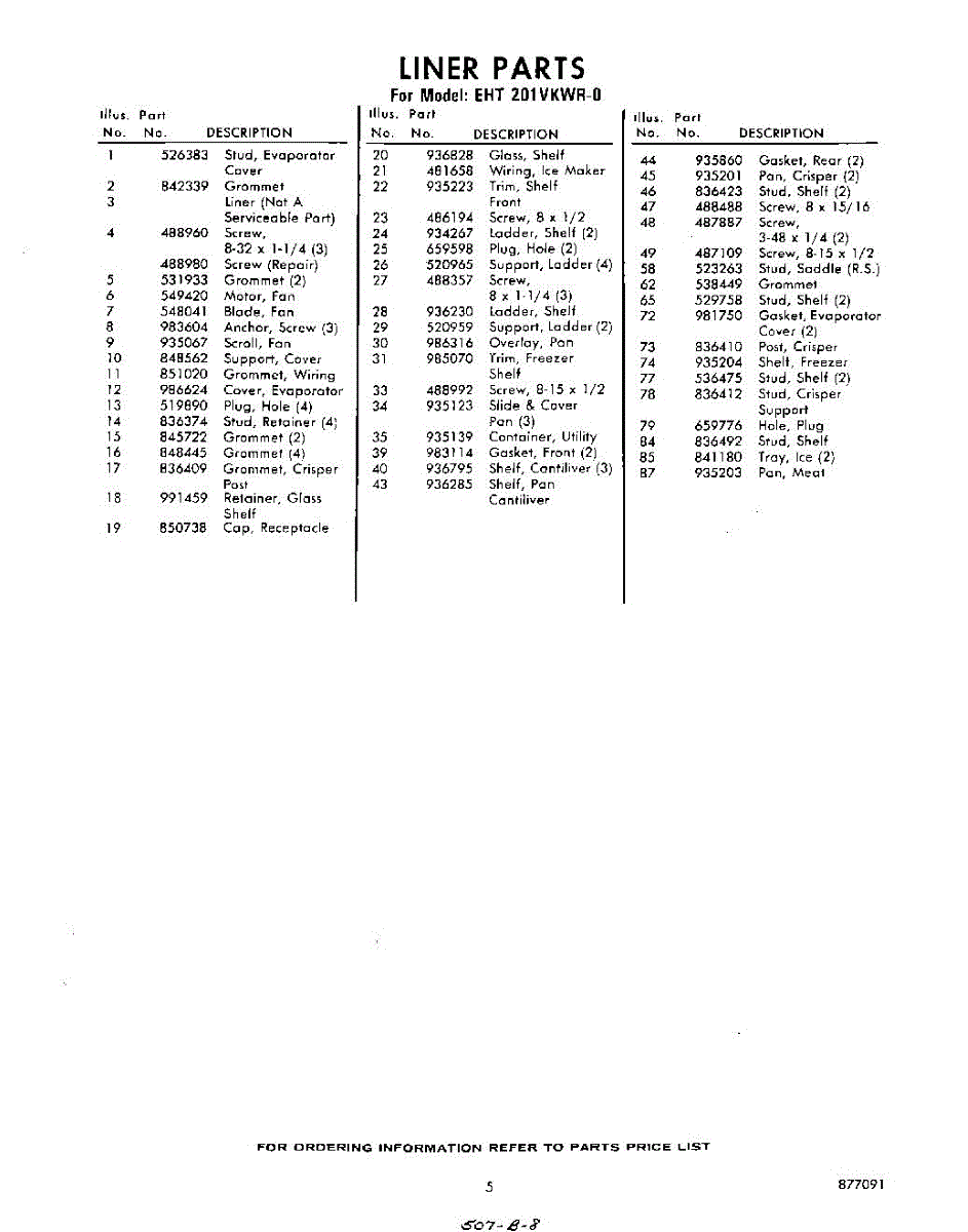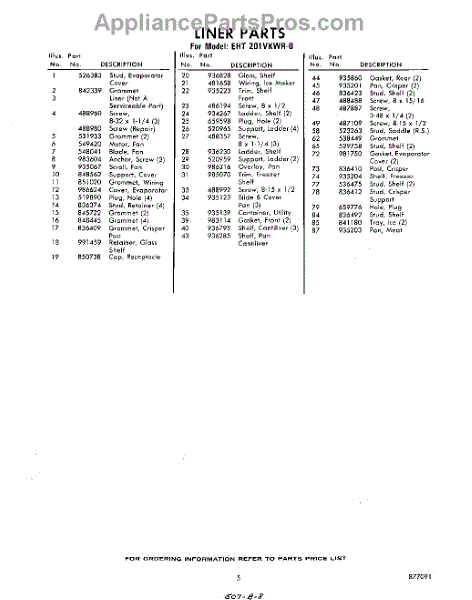 Parts for Whirlpool EHT201VKWR0: 05 - Section Parts