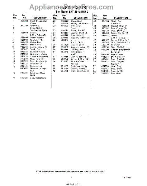 Parts for Whirlpool EHT201VKWR2: 05 - Section Parts