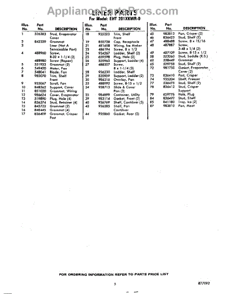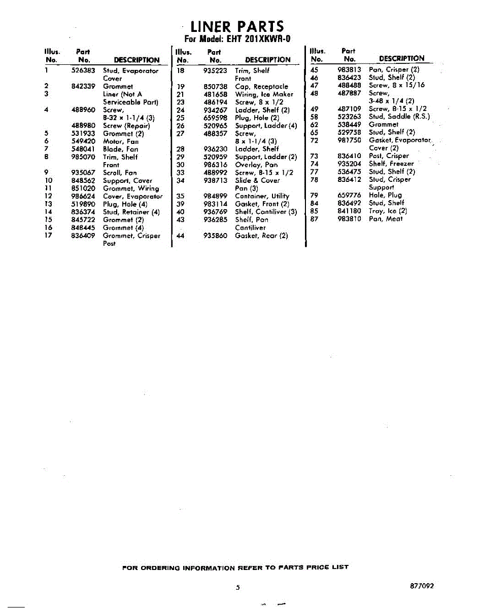 Parts for Whirlpool EHT201XKWR0: 05 - Section Parts