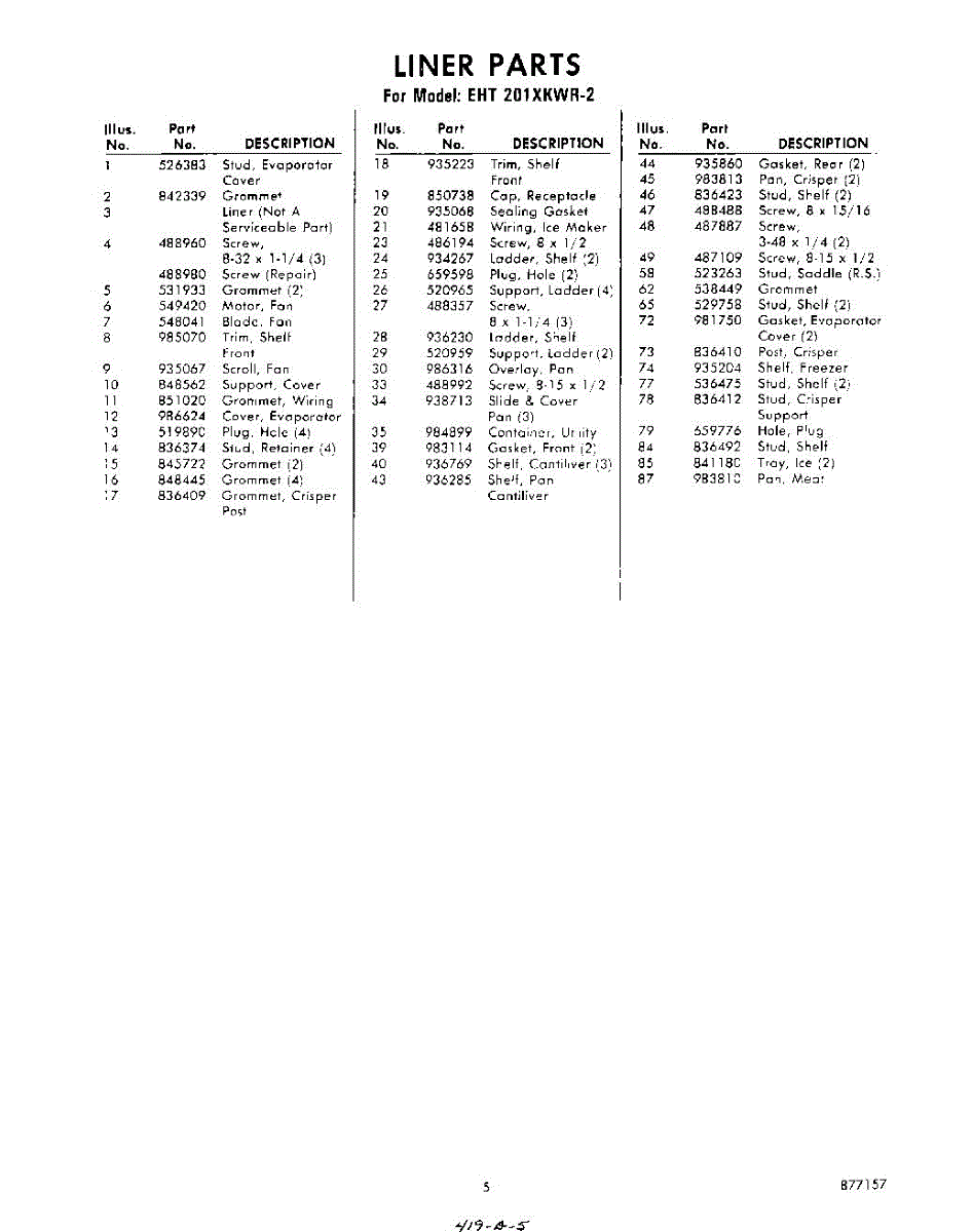 Parts for Whirlpool EHT201XKWR2: 05 - Section Parts