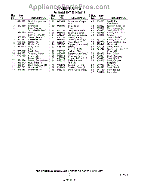 Parts for Whirlpool EHT201XKWR6: 05 - Section Parts