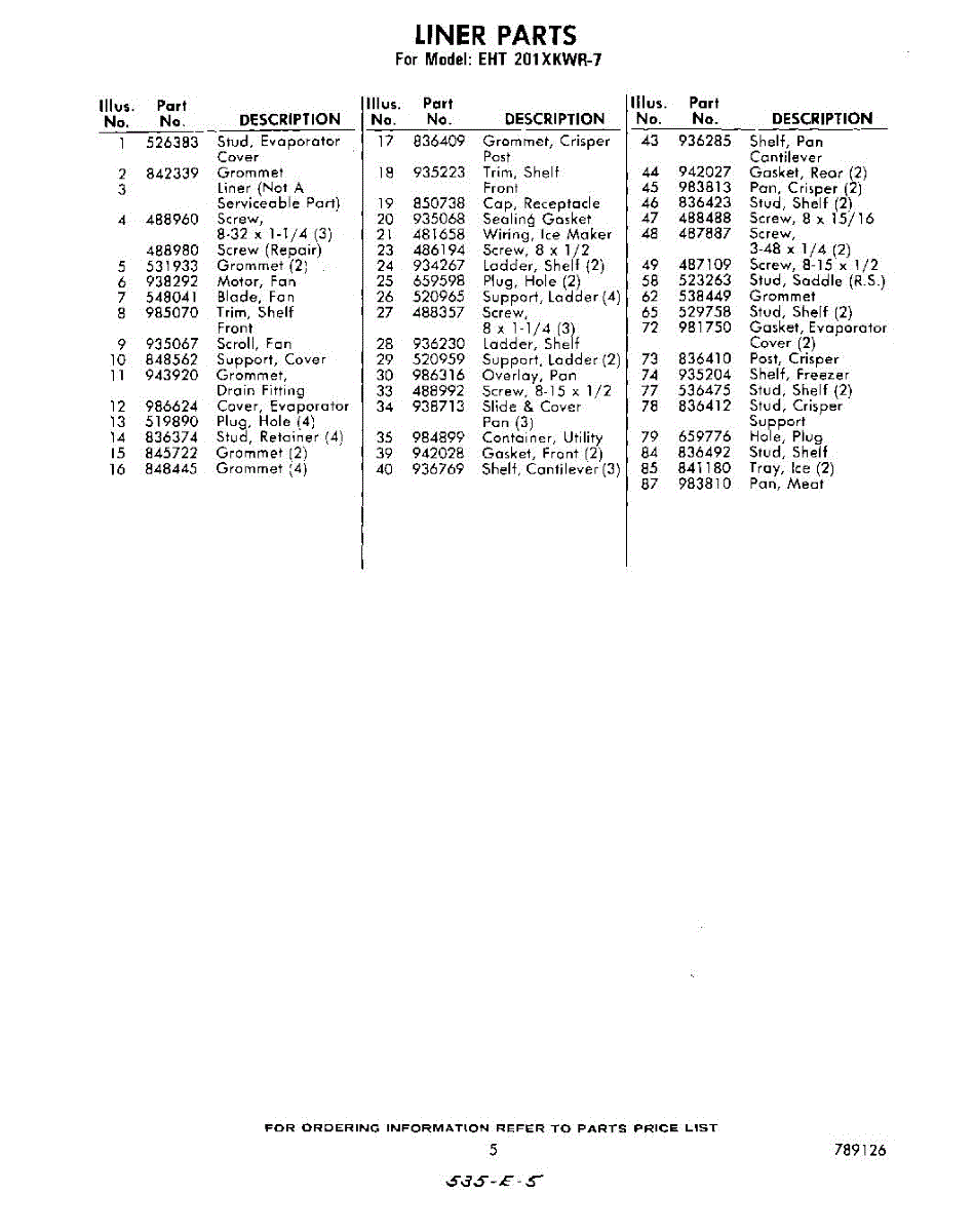 Parts for Whirlpool EHT201XKWR7: 05 - Section Parts
