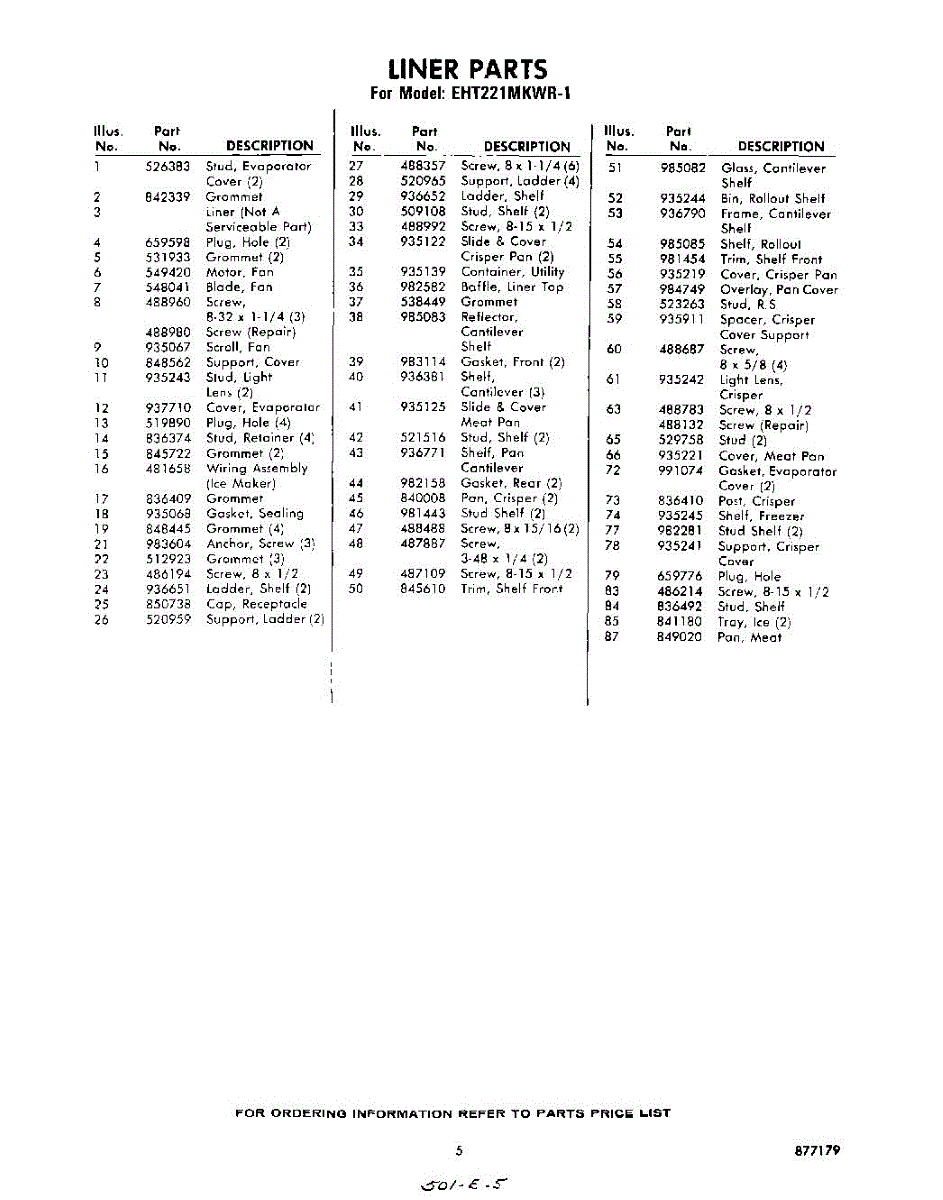 Parts for Whirlpool EHT221MKWR1: 05 - Section Parts