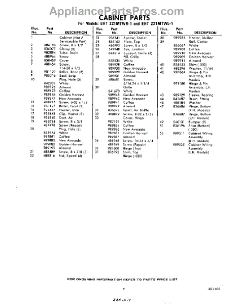 Parts for EHT221MTWR1