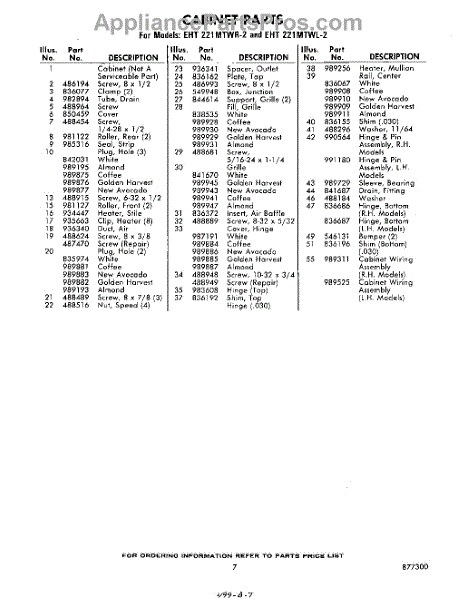 Parts for Whirlpool EHT221MTWR2: 07 - Section Parts
