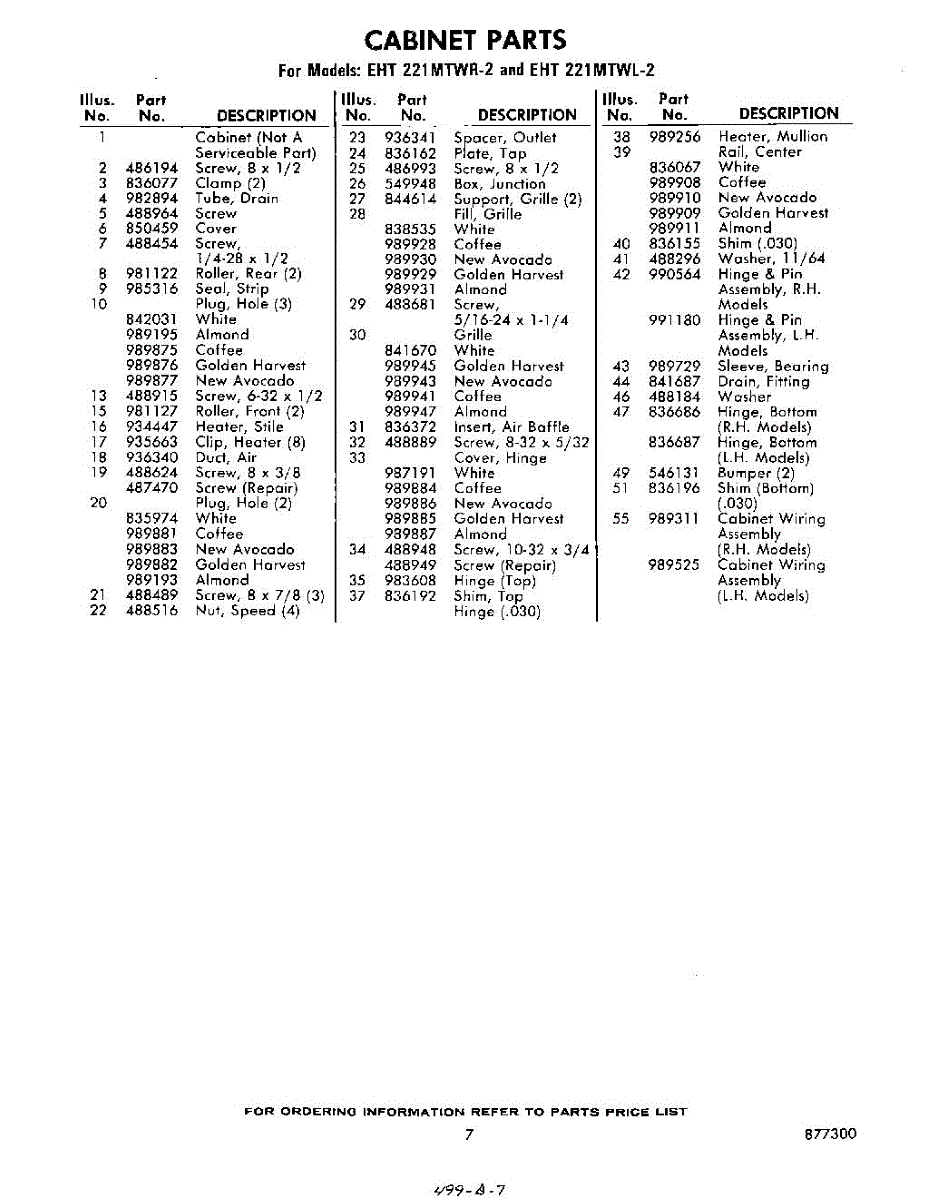 Parts for EHT221MTWR2