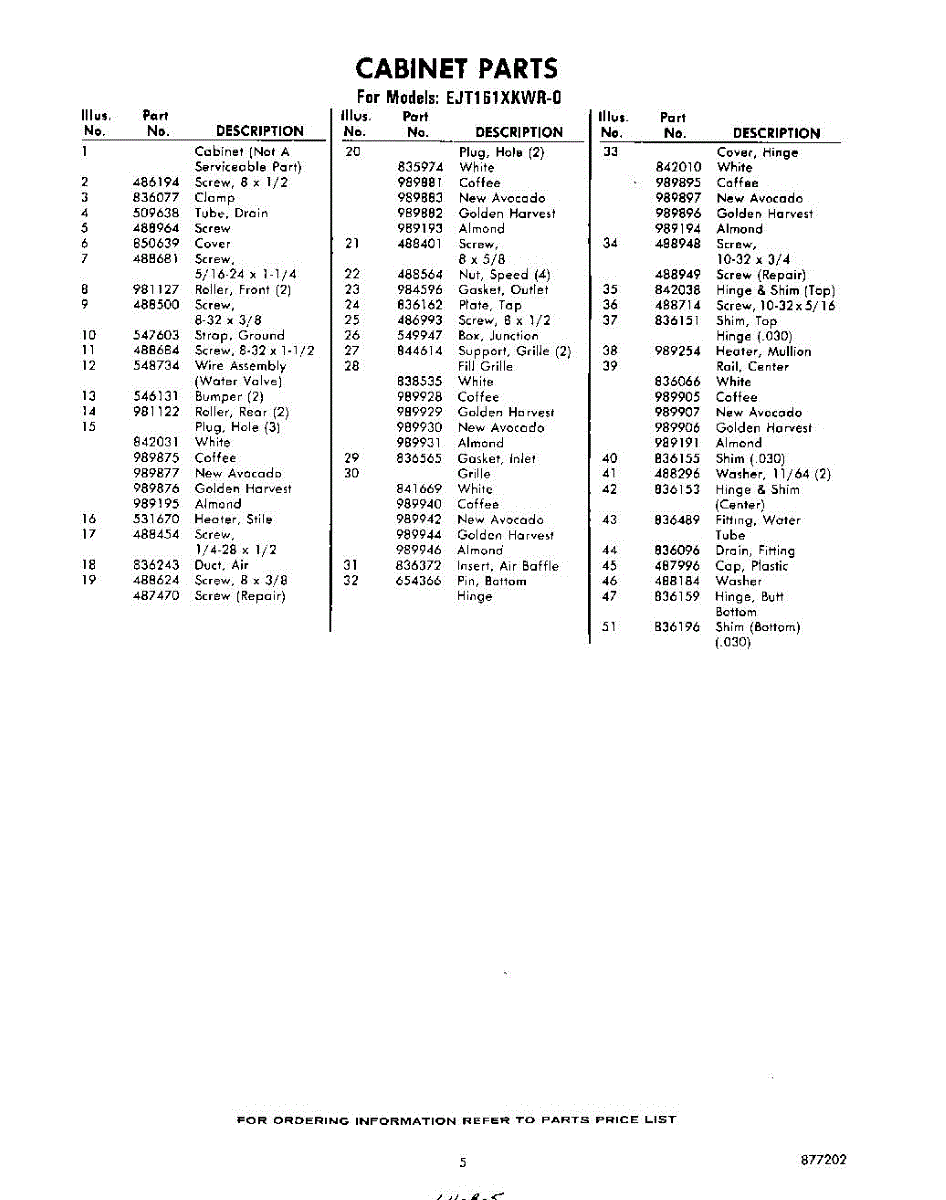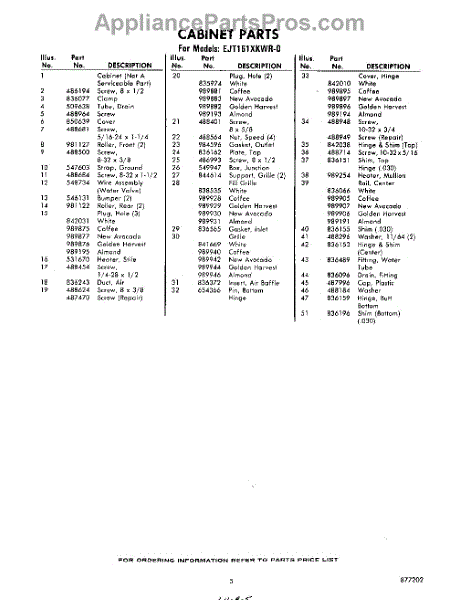 Parts for Whirlpool EJT161XKWR0: 05 - Section Parts