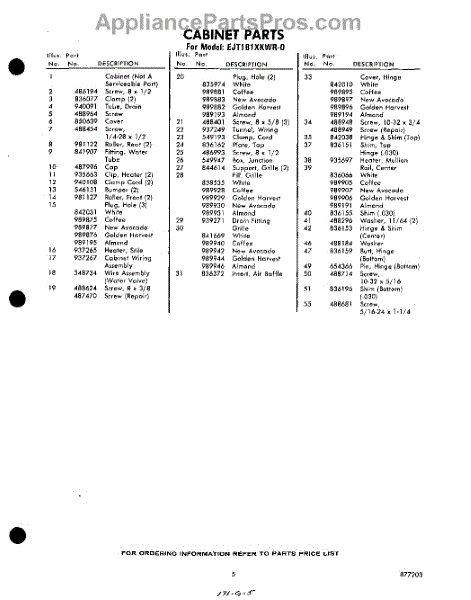 Parts for Whirlpool EJT181XKWR0: 05 - Section Parts