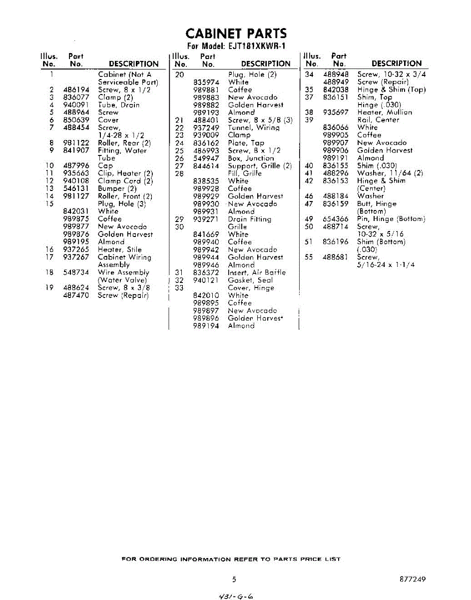 Parts for Whirlpool EJT181XKWR1: 05 - Section Parts