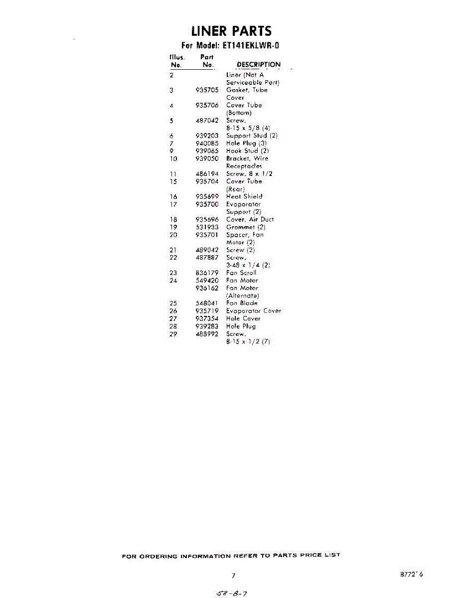 Parts for ET141EKLWR0