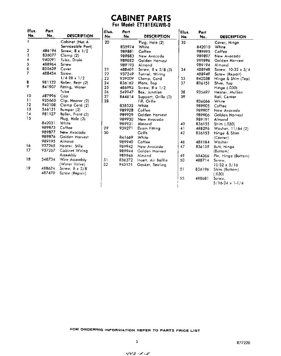 Parts for Whirlpool ET181EKLWR0: 05 - Section Parts