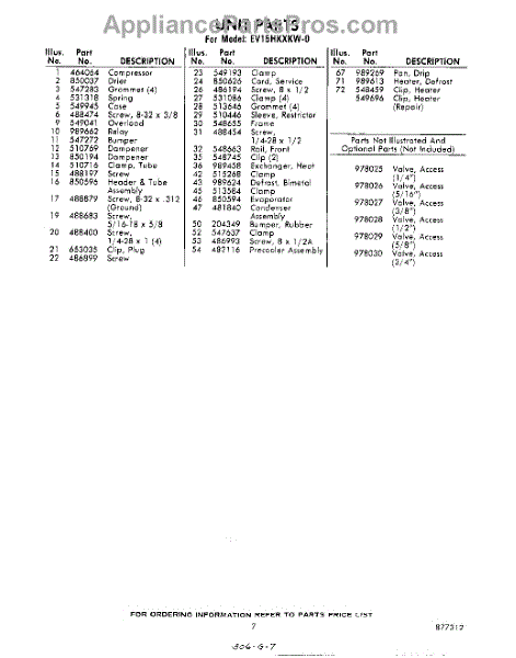 Parts for Whirlpool EV15HKXKW0: 07 - Section Parts