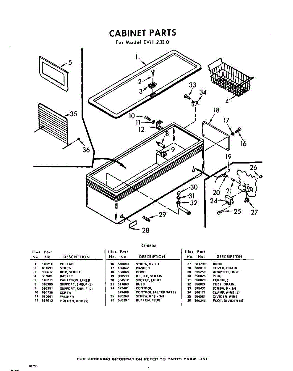 Parts for Whirlpool EVH23I0: 02 - Section Parts