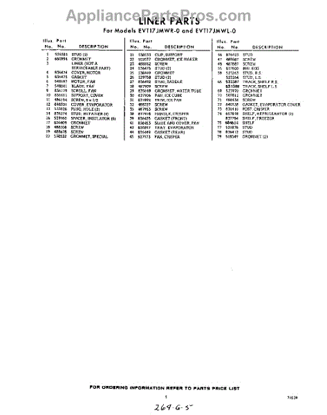 Parts for Whirlpool EVT17JMWR0: 05 - Section Parts