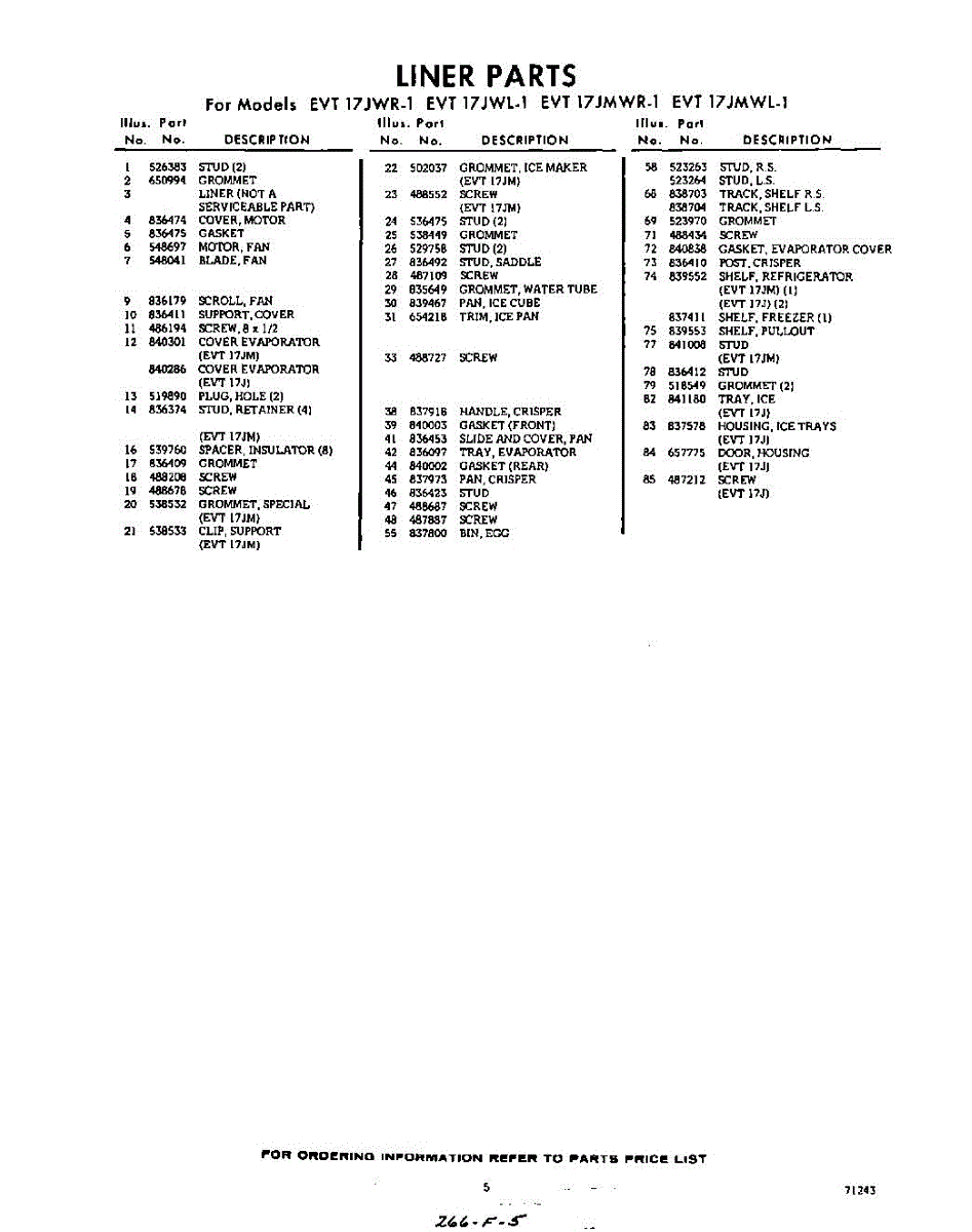 Parts for EVT17JMWR1