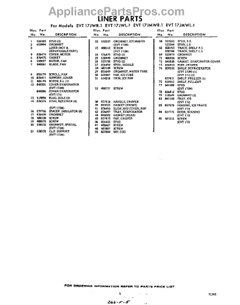 Parts for EVT17JWR1