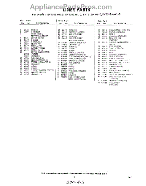 Parts for Whirlpool EVT51ZWR0: 05 - Section Parts