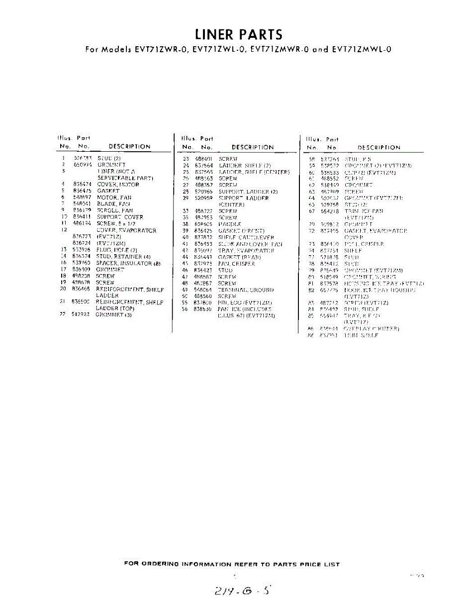 Parts for EVT71ZMWR0
