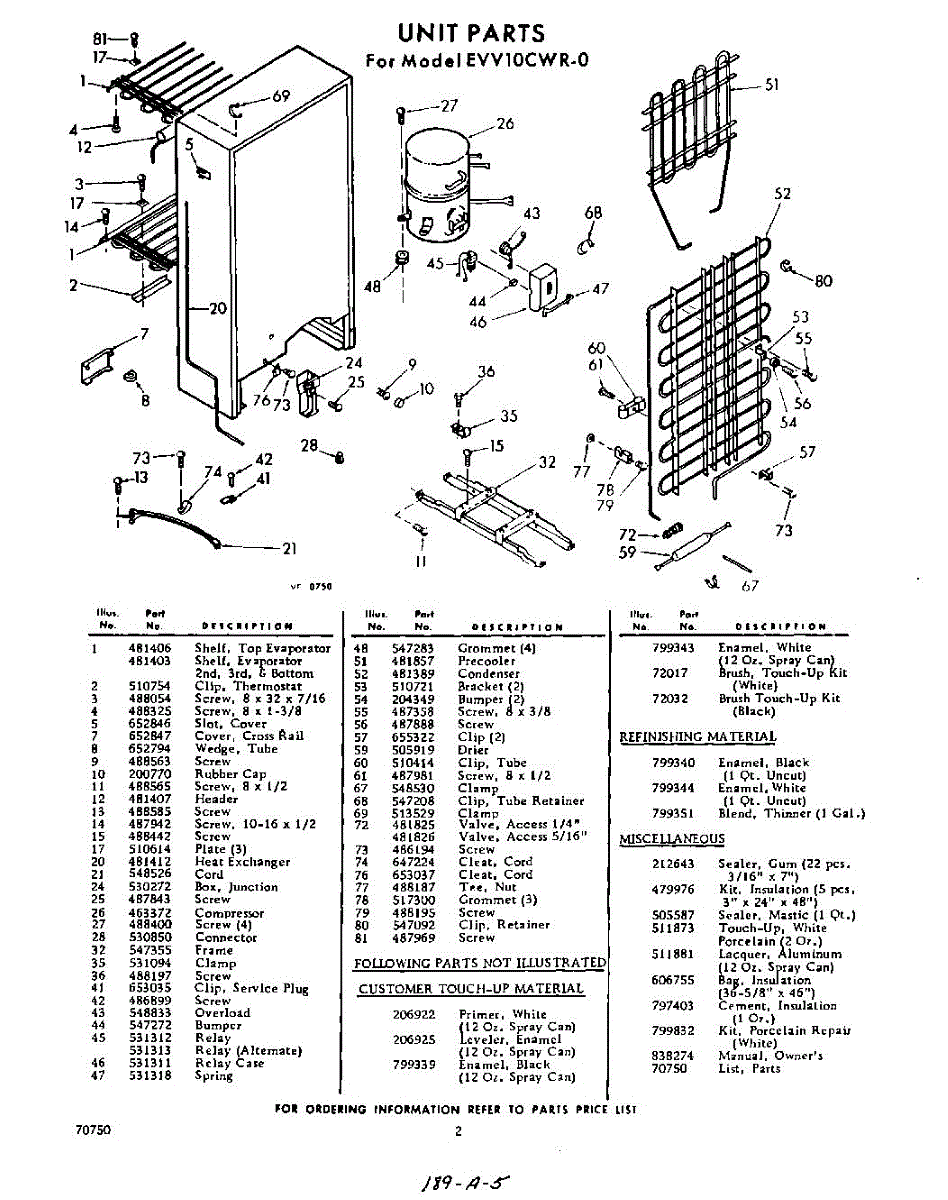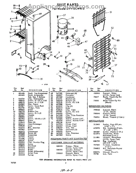 Parts for Whirlpool EVV10CWR0: 02 - Section Parts