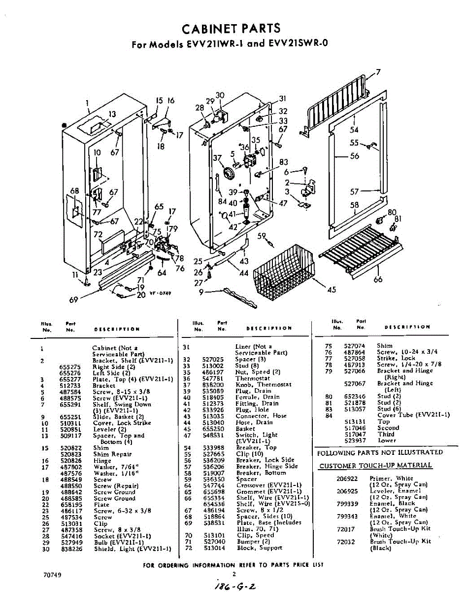 Parts for Whirlpool EVV21SWR0: 02 - Section Parts