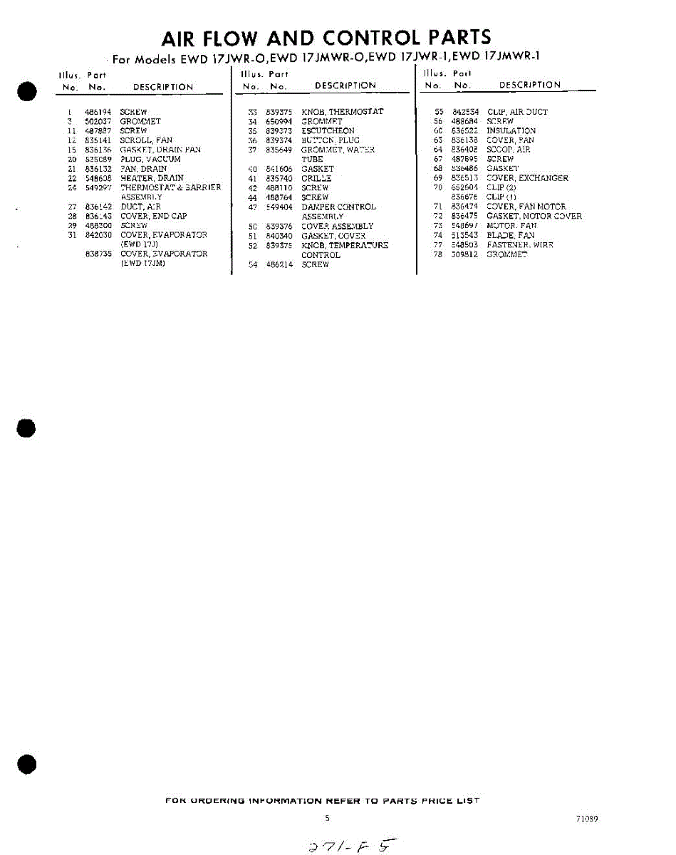 Parts for EWD17JMWR1