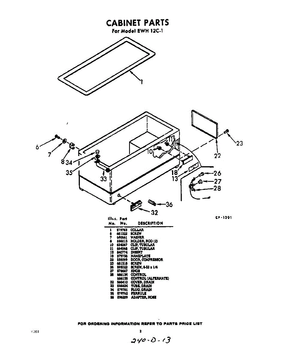 Parts for Whirlpool EWH12C1: 02 - Section Parts