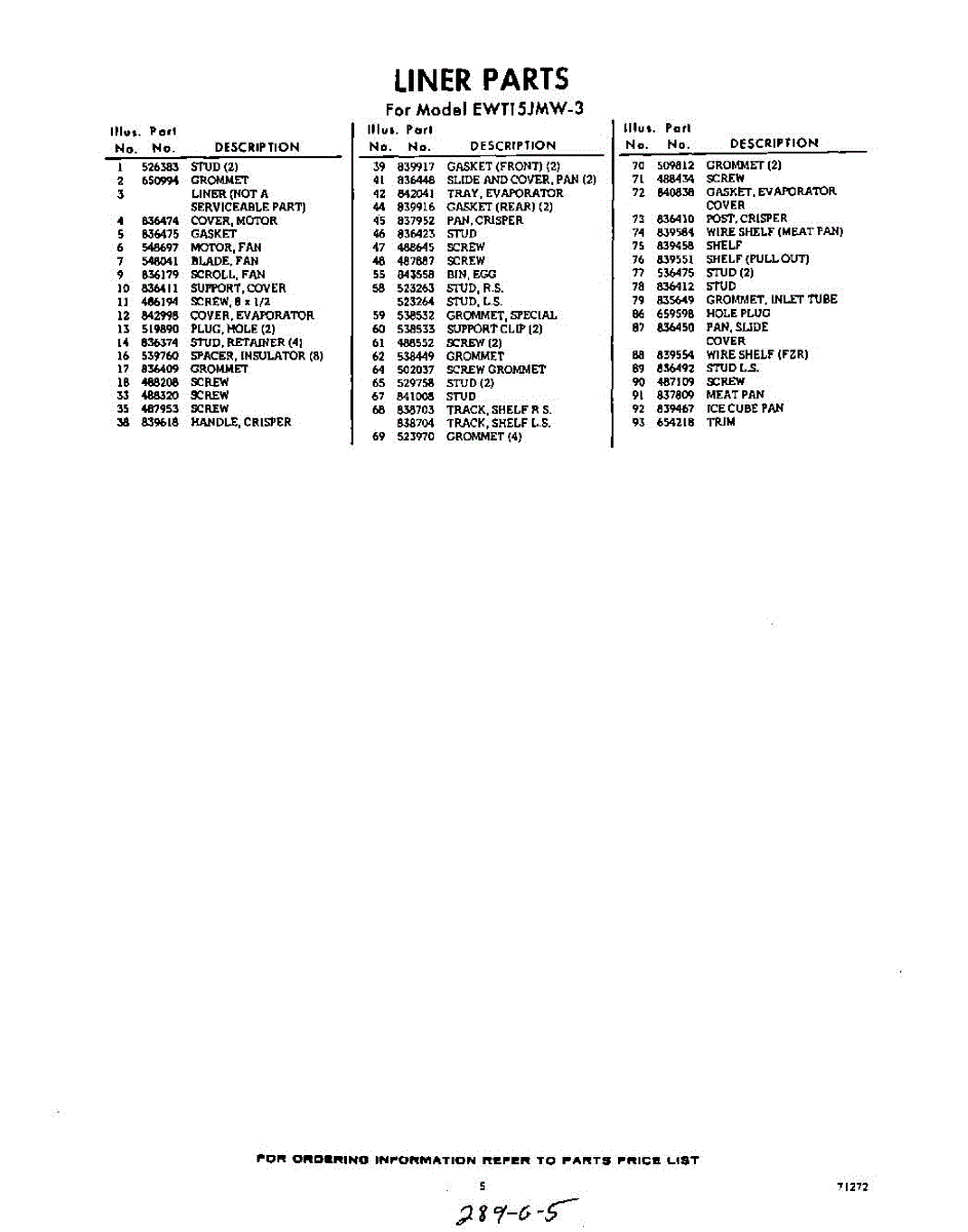Parts for EWT15JMW3