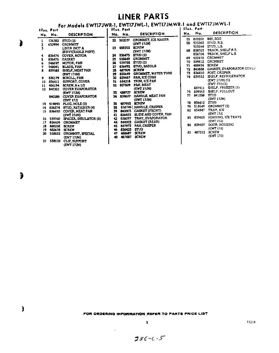 Parts for EWT17JWR1