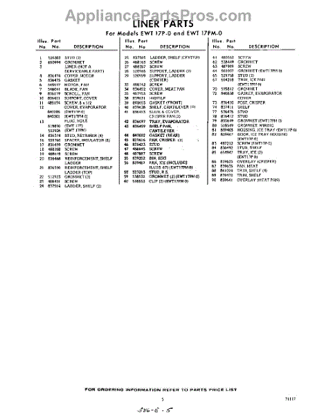 Parts for Whirlpool EWT17PMWR0: 05 - Section Parts