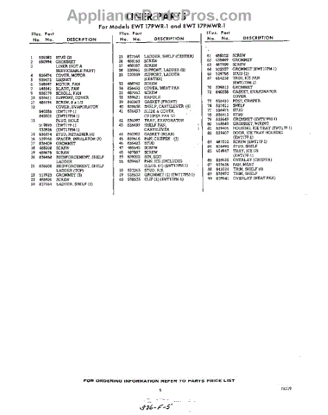 Parts for EWT17PMWR1
