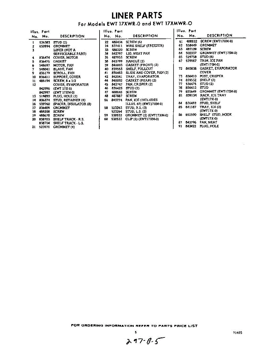 Parts for EWT17XMWR0