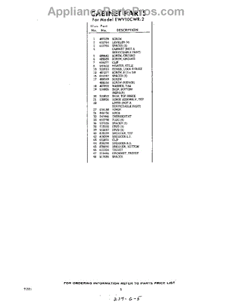 Parts for EWV10CWR2