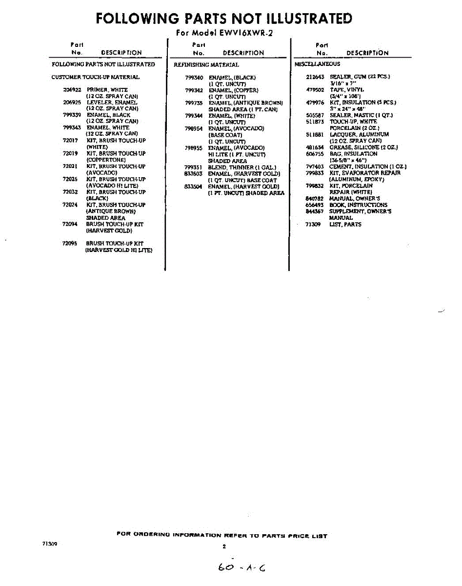 Parts for EWV16XWR2