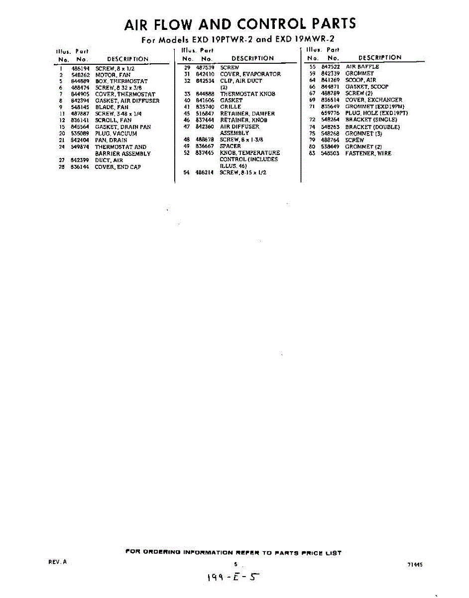 Parts for EXD19PMWR2