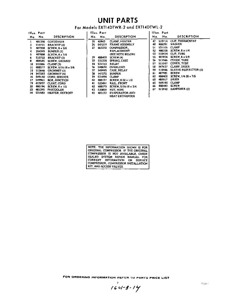 Parts for EXT14DTW2