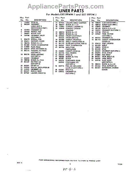 Parts for Whirlpool EXT19PTW1: 05 - Section Parts