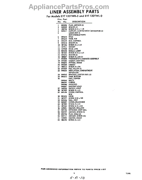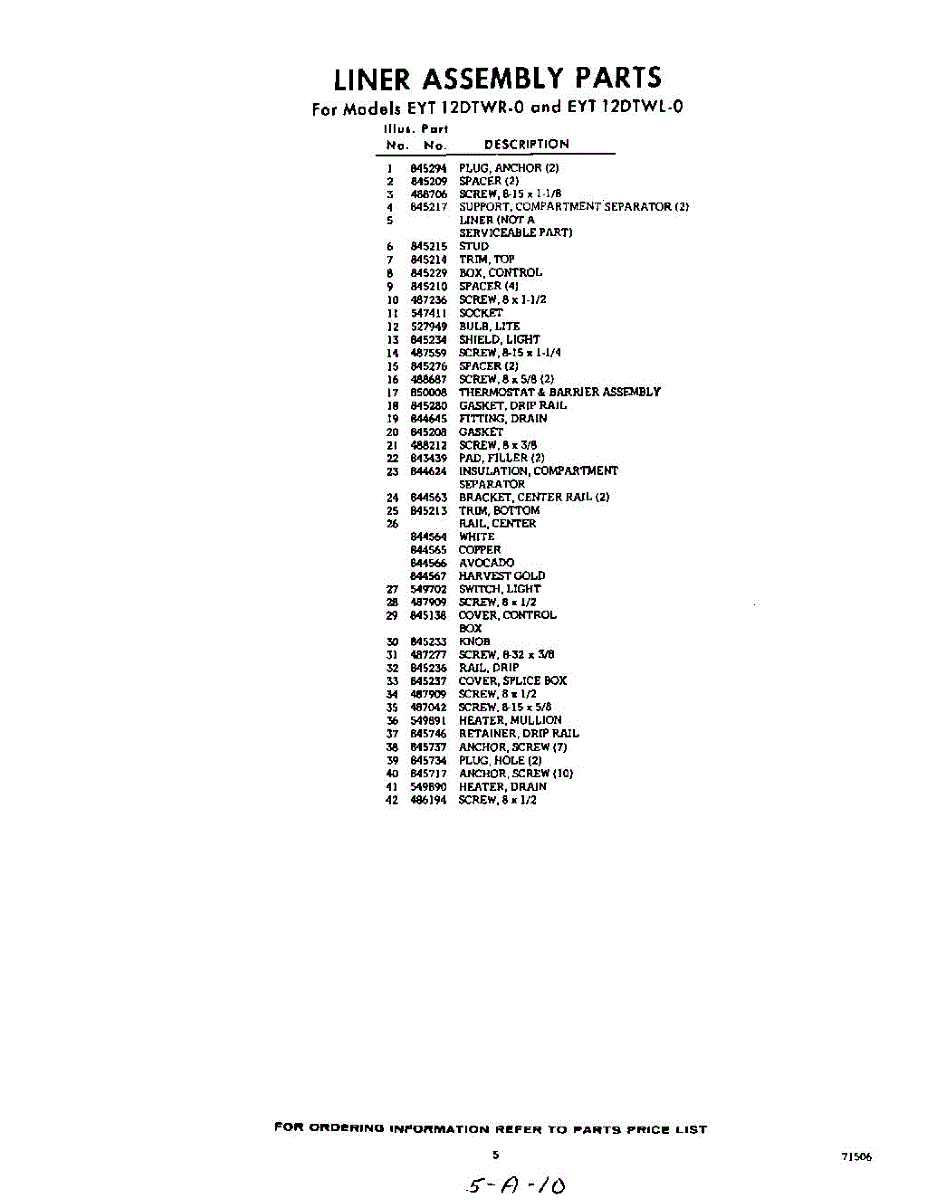 Parts for Whirlpool EYT12DTWR0: 05 - Section Parts