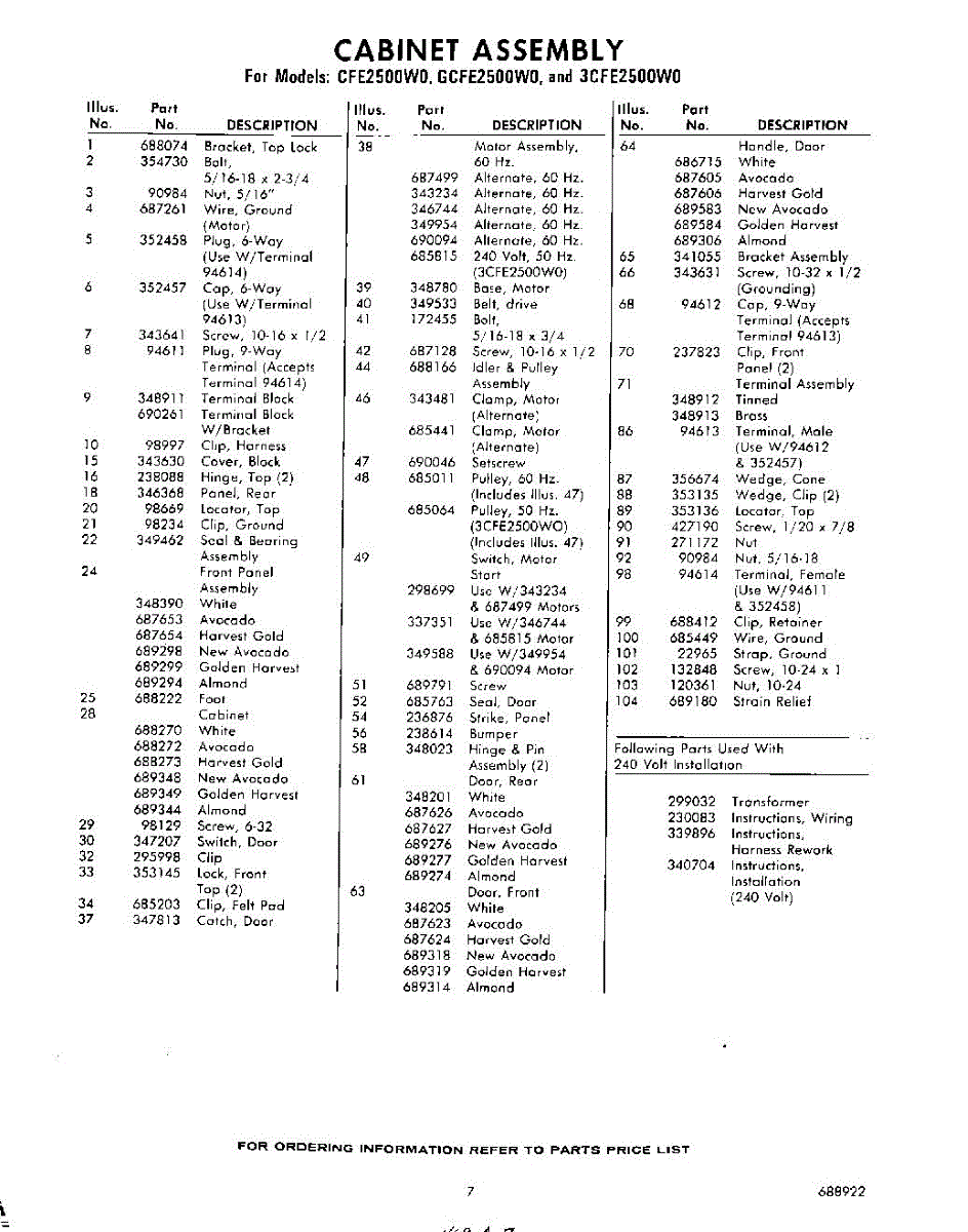 Parts for GCFE2500W0