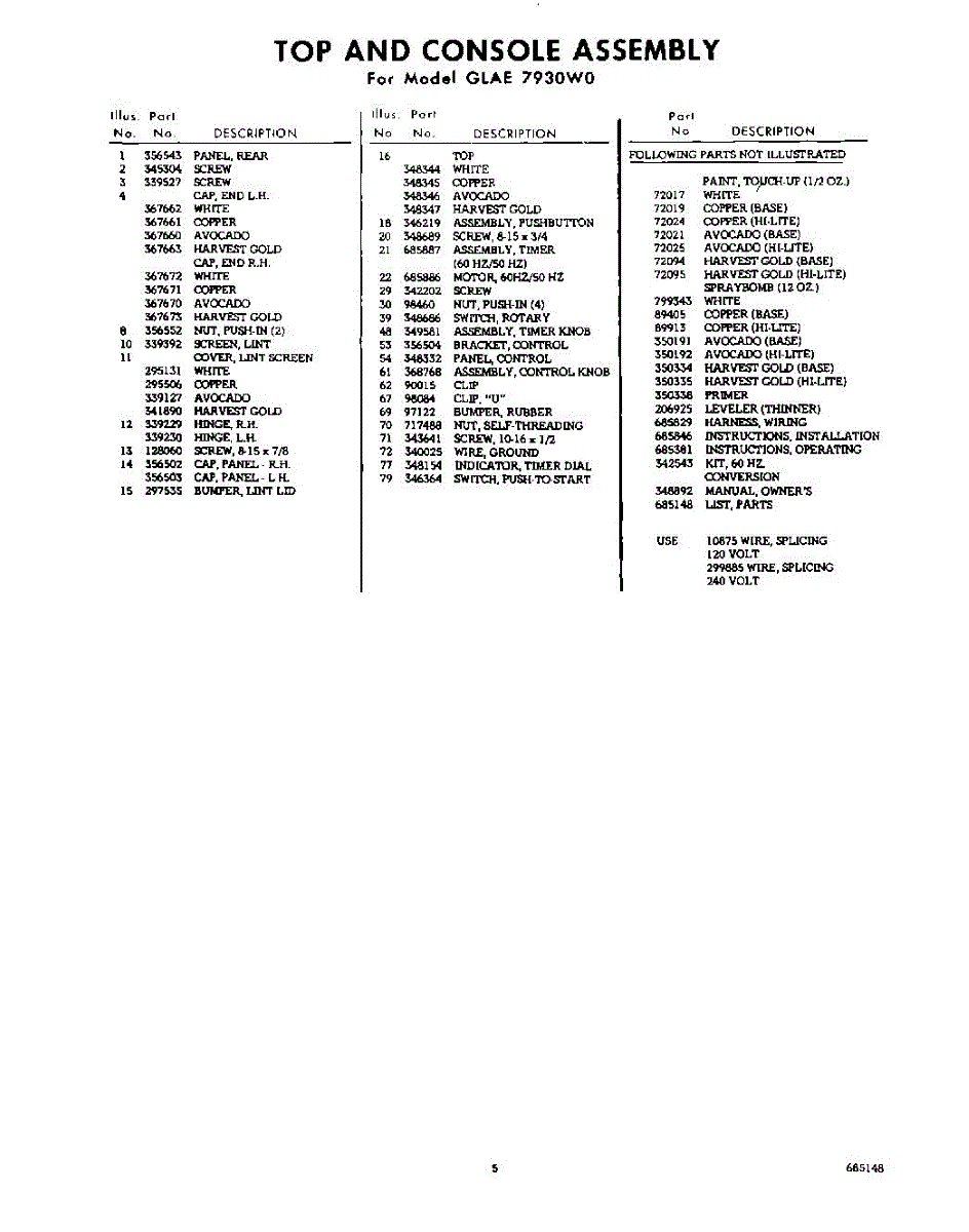 Parts for Whirlpool GLAE7930W0: 05 - Section Parts